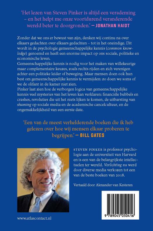 Pinker laat zien hoe de verborgen logica van gemeenschappelijke kennis veel mysteries van het leven kan verklaren: financiële bubbels en crashes, revoluties die uit het niets lijken te komen, de uitbarsting van shaming op sociale media en academische cancelcultuur en de ongemakkelijkheid van een eerste date.