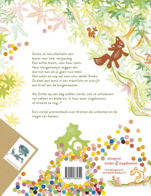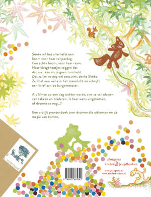 Simke is bijna jarig en ze heeft maar één grote wens: een boom in de straat. Ze schrijft een brief aan de burgemeester en wacht af. Als ze een paar dagen later wakker wordt, staat de straat vol bomen. Wat een geweldig cadeau! De hele straat komt tot leven: de boswachter vertelt over de dieren in de bomen, papa leest voor vanaf het balkon, er worden boomhutten gebouwd en kinderen spelen verstoppertje. Simke zou willen dat het bos voor altijd in hun straat blijft, maar kan dat wel?