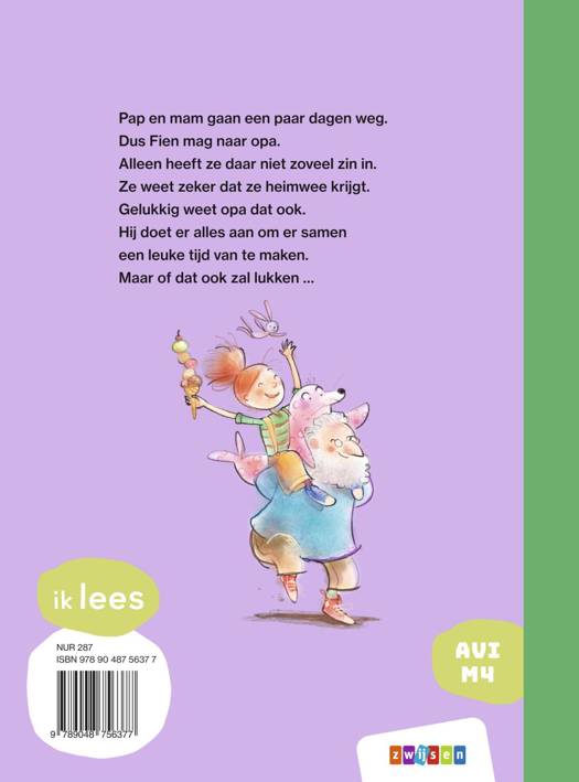 Fien heeft geen zin om bij opa te logeren, want dan krijgt ze vast weer last van heimwee. Maar pap en mam gaan een paar dagen weg, dus ze moet wel. Fiens lieve opa verzint van alles om het gezellig voor haar te maken, maar is dat genoeg om haar ‘heimwee-monster’ te stoppen?