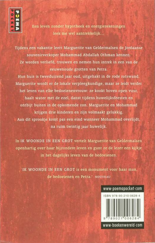In Ik woonde in een grot vertelt Marguerite Geldermalsen openhartig over haar bijzondere leven en gunt ze de lezer een kijkje in het dagelijks leven van de Bedoeïenen.