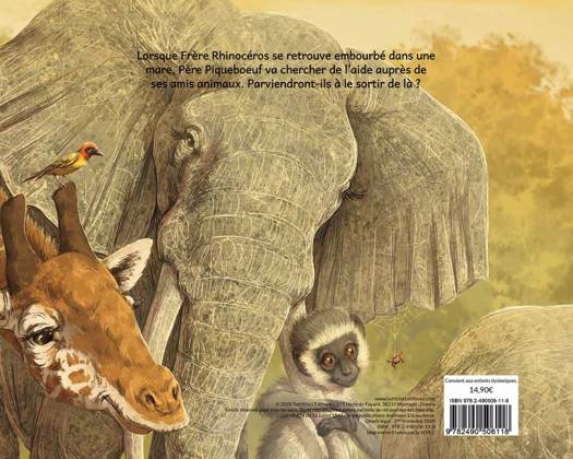 Lorsque Frère Rhinocéros se retrouve embourbé dans une mare, Père Piqueboeuf va chercher de l'aide auprès de ses amis animaux. Parviendront-ils à le sortir de là ? Nous avons tous des talents différents et particuliers. Si seuls nous ne pouvons rien, ensemble, en combinant nos talents, nous réussirons à résoudre les pires difficultés : une belle leçon de solidarité dans ce conte animalier superbement illustré par Kayla Harren. Pour chaque livre acheté, les droits d'auteur sont versés au Wild Nature Institute qui contribue à la protection des espèces animales menacées et à l'éducation du public sur la nécessité de préserver la faune sauvage.