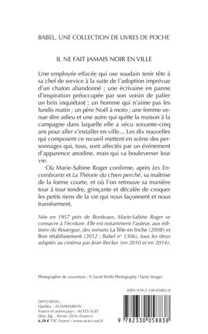 Le quotidien d'hommes et de femmes seuls ou en couple, jeunes ou moins jeunes, en ville, à la campagne, en France, à Madagascar... Dix nouvelles, un ton tour à tour humoristique, léger et grave, des chutes inattendues, par l'auteur de «La Tête en friche».