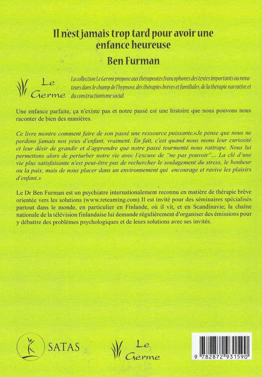 Une enfance parfaite, ça n'existe pas et notre passé est une histoire que nous pouvons nous raconter de bien des manières. Ce livre montre comment faire de son passé une ressource puissante. "Je pense que nous ne perdons jamais nos yeux d'enfant, vraiment. En fait, c'est quand nous nions leur curiosité et leur désir de grandir et d'apprendre que notre passé tourmenté nous rattrape. Nous lui permettons alors de perturber notre vie avec l'excuse de "ne pas pouvoir"... La clé d'une vie plus satisfaisante n'est peut-être pas de rechercher le soulagement du stress, le bonheur ou la paix, mais de nous placer dans un environnement qui encourage et ravive les plaisirs d'enfant."