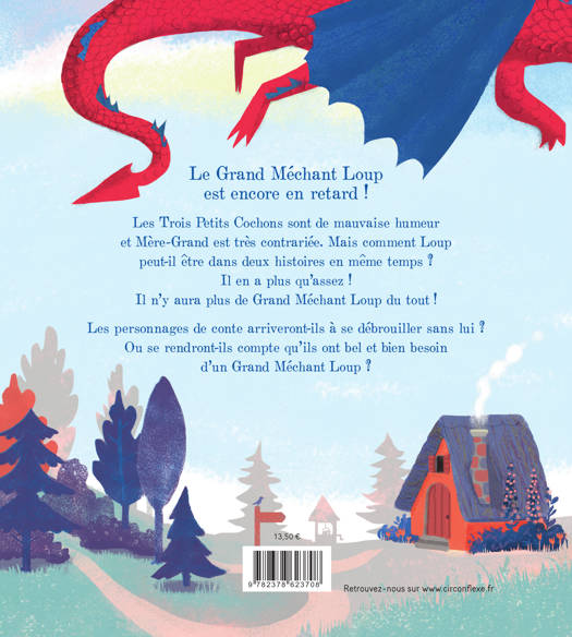 Le grand méchant loup est toujours en retard dans ces histoires et court après le temps ! Comment peut-il être présent dans le conte du Petit Chaperon rouge, puis dans celui des Trois Petits Cochons ? Trop, c’est trop ! Il décide de faire grève et de ne plus travailler. Les personnages de ces contes essaient de trouver un remplaçant à ce loup si essentiel… En vain, car il est bien irremplaçable et garant d’une histoire réussie !