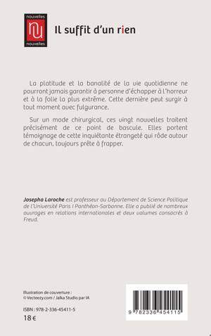 La platitude et la banalité de la vie quotidienne ne pourront jamais garantir à personne d'échapper à l'horreur et à la folie la plus extrême. Cette dernière peut surgir à tout moment avec fulgurance. Sur un mode chirurgical, ces vingt nouvelles traitent précisément de ce point de bascule. Elles portent témoignage de cette inquiétante étrangeté qui rôde autour de chacun, toujours prête à frapper.