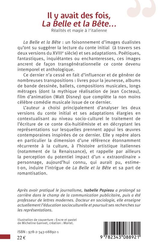En prenant comme matériau les deux versions initiales de La Belle et la Bête datant du XVIIIème siècle, puis en étudiant ses adaptations (film d'animation, longs-métrages, albums de bandes dessinées, ballets, comédies musicales...), Isabelle PAPIEAU dresse une étonnante analyse littéraire. Devenu intemporel et anthologique, ce conte-type contient néanmoins un grand nombre d'aspects relativement méconnus. Notamment ses racines italiennes.