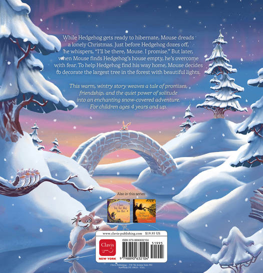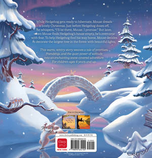 While Hedgehog gets ready to hibernate, Mouse dreads a lonely Christmas. Just before Hedgehog dozes off, he whispers, "I'll be there, Mouse. I promise." But later when Mouse finds Hedgehog's nest empty, he's overcome with fear. To help Hedgehog find his way home, Mouse decides to decorate the largest tree in the forest with beautiful lights.