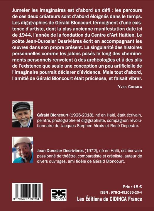 Composé de trente poèmes-images, ce livre initie un dialogue entre deux artistes haïtiens qui hantent leur terre d’origine via l’étreinte de leurs imaginaires. Les textes poétiques de J.-D. Desrivières et les digigraphies allusives de G. Bloncourt nous livrent une mémoire et une identité d’Haïti, faites de désirs et blessures, de luttes et espérances en Caraïbe et au-delà.