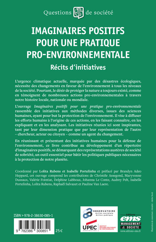 L’ouvrage Imaginaires positifs pour une pratique pro-environnementale rassemble des initiatives aux méthodes diverses, issues des sciences humaines, ayant pour but la protection de l’environnement. Il vise à diffuser les efforts humains à l’origine de ces actions, en les faisant connaître, en les expliquant et en les analysant. Les initiatives réunies ici sont inspirantes, tant par leur dimension pratique que par leur représentation de l’autre – chercheur, acteur ou citoyen – comme un agent du changement.