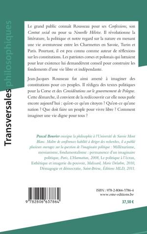 Les constitutions sont aux fondements des démocraties contemporaines mais elles ont une histoire. Rousseau, connu pour de nombreux textes politiques fondamentaux comme le Contrat social ou le Discours sur l'origine et les fondements de l'inégalité parmi les hommes, a rédigé deux projets constitutionnels : un pour les patriotes corses, l'autre pour les patriotes polonais. A la lecture de ces textes, nous pouvons découvrir un Rousseau qui s'éloigne sensiblement des clichés et des idées reçues, par son réalisme et son aptitude à imaginer des modèles politiques. Imaginer en politique, voilà l'essentiel !