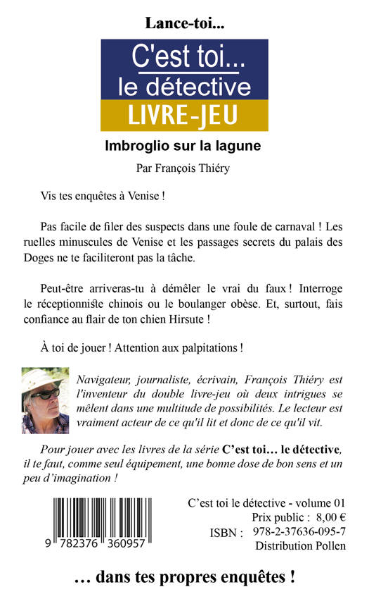 Vis tes enquêtes à Veniseâ! Pas facile de filer des suspects dans une foule de carnaval ! Les ruelles minuscules de Venise et les passages secrets du palais des Doges ne te faciliteront pas la tâche. Peut-être arriveras-tu à démêler le vrai du fauxâ! Interroge le réceptionniste chinois ou le boulanger obèse. Et, surtout, fais confiance au flair de ton chien Hirsute ! À toi de jouerâ! Attention aux palpitationsâ!