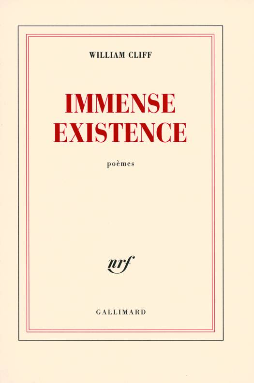 "Dans Immense existence, l'électricité propre à William Cliff produit de nouveau ce sourd rayonnement de lampe de poche qui se promène dans les recoins obscurs ou négligés des sentiments et de la vie. Elle les éclaire furtivement, comme pour ne pas effrayer leurs ombres, mais leur donne un relief en creux, d'une vérité troublante." Jacques Réda.