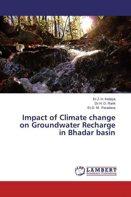 The groundwater recharge estimated by different methods like water balance, Krishna Rao(1970) and water table fluctuation were compared. The groundwater recharge depth for the entire basin was obtained by area weightage method. The trend analysis for all the time series was carried out by Mann-Kendall, Sen's slope and best fit trend line method.The climate change impacts on rainfall favors to increase the rainfall significantly in 3 out of 9 watersheds while the runoff is found increasing in 3 out of 9 watersheds of the basin. The runoff in Bhadar basin is found increasing at the rate 8.1 mm per decade respectively. The groundwater recharge estimated by water balance method was found higher as compared to Krishna Rao (1970) and water table fluctuation method. The groundwater recharge estimated by water balance, Krishna Rao (1970) and water table fluctuation methods is found increasing in 3, 3 and 6 watersheds out of 9 watersheds of the basin. The groundwater recharge in the basin during monsoon is found increasing at the rate of 4.4 mm per decade in water table fluctuation methods due to climate change impacts.