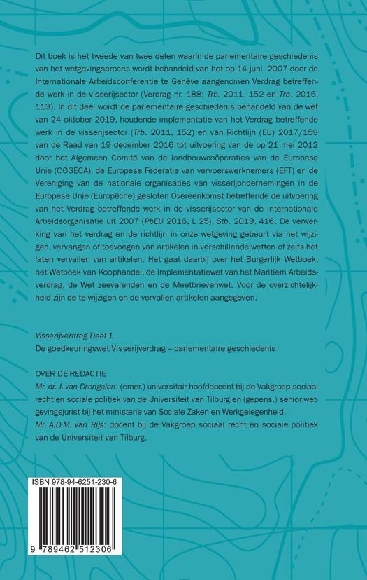 Dit boek is het tweede van twee delen waarin de parlementaire geschiedenis van het wetgevingsproces wordt behandeld van het op 14 juni_ 2007 door de Internationale Arbeidsconferentie te Genève aangenomen Verdrag betreffende werk in de visserijsector (Verdrag nr. 188; Trb. 2011, 152 en Trb. 2016, 113). In dit deel wordt de parlementaire geschiedenis behandeld van de wet van 24 oktober 2019, houdende implementatie van het Verdrag betreffende werk in de visserijsector (Trb. 2011, 152) en van Richtlijn (EU) 2017/159 van de Raad van 19 december 2016 tot uitvoering van de op 21 mei 2012 door het Algemeen Comité van de landbouwcoöperaties van de Europese Unie (COGECA), de Europese Federatie van vervoerswerknemers (EFT) en de Vereniging van de nationale organisaties van visserijondernemingen in de Europese Unie (Europêche) gesloten Overeenkomst betreffende de uitvoering van het Verdrag betreffende werk in de visserijsector van de Internationale Arbeidsorganisatie uit 2007 (PbEU 2016, L 25), Stb. 2019, 416. De verwerking van het verdrag en de richtlijn in onze wetgeving gebeurt via het wijzigen, vervangen of toevoegen van artikelen in verschillende wetten of zelfs het laten vervallen van artikelen. Het gaat daarbij over het Burgerlijk Wetboek, het Wetboek van Koophandel, de implementatiewet van het Maritiem Arbeidsverdrag, de Wet zeevarenden en de Meetbrievenwet. Voor de overzichtelijkheid zijn de te wijzigen en de vervallen artikelen aangegeven.