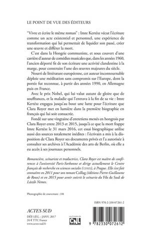 Avec le prix Nobel, qui lui valut autant de gloire que de souffrances, et la maladie qui l'entrava à la fi n de sa vie : Imre Kertész engagea jusqu'au bout une lutte pour l'écriture que Clara Royer met en lumière dans la première biographie en français qui lui soit consacrée.