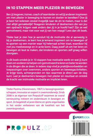 In dit boek ontdek je in 10 stappen hoe motivatie werkt en wat jij kunt doen om anderen te helpen om gemotiveerd te leren en beter te worden in de dingen die ze doen. In iedere stap vind je praktijkvoorbeelden en toepassingen over zwemmen, andere sporten en beweegactiviteiten. Je krijgt tools, achtergronden en tips waarmee je direct aan de slag kunt. Laat je deelnemers bewegen met plezier en resultaat en ontdek de kracht van intrinsieke motivatie en impliciet leren.