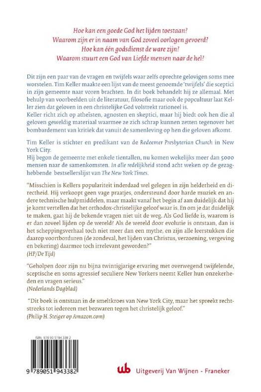 In dit boek gebruikt Tim Keller voorbeelden uit de literatuur, filosofie en de popcultuur om uit te leggen dat geloven in een christelijke God een rationele religie is van intellectueel integere mensen. Boeiend en overtuigend geschreven.