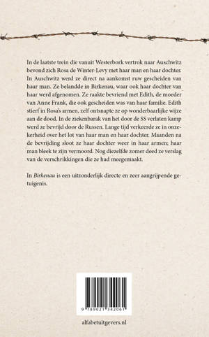 In de laatste trein die vanuit Westerbork vertrok naar Auschwitz bevond zich Rosa de Winter-Levy met haar man en haar dochter. In Auschwitz werd ze direct na aankomst ruw gescheiden van haar man. Ze belandde in Birkenau, waar ook haar dochter van haar werd afgenomen. Ze raakte bevriend met Edith, de moeder van Anne Frank, die ook gescheiden was van haar familie. Edith stierf in Rosa’s armen, zelf ontsnapte ze op wonderbaarlijke wijze aan de dood. In de ziekenbarak van het door de SS verlaten kamp werd ze bevrijd door de Russen. Lange tijd verkeerde ze in onzekerheid over het lot van haar man en haar dochter. Maanden na de bevrijding sloot ze haar dochter weer in haar armen; haar man bleek te zijn vermoord. Nog diezelfde zomer deed ze verslag van de verschrikkingen die ze had meegemaakt. ‘In Birkenau’ is een uitzonderlijk directe en zeer aangrijpende getuigenis.