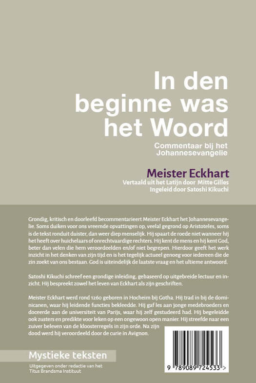 Grondig, kritisch en doorleefd becommentarieert Meister Eckhart het Johannesevangelie. Soms duiken voor ons vreemde opvattingen op, veelal gegrond op Aristoteles, soms is de tekst ronduit duister, dan weer diep menselijk. Eckhart spaart de roede niet wanneer hij het heeft over huichelaars of onrechtvaardige rechters. Hij kent de mens en hij kent God, beter dan velen die hem veroordeelden en/of niet begrepen. Hierdoor geeft het werk inzicht in het denken van zijn tijd en is het tegelijk actueel genoeg voor iedereen die de zin zoekt van ons bestaan. Satoshi Kikuchi, wetenschappelijk medewerker aan de faculteit Theologie en Religiewetenschappen van de KU Leuven schreef een grondige inleiding, waarin hij zowel het leven van Eckhart als zijn geschriften bespreekt.