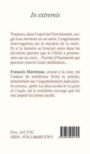 À ceux dont le corps, tel une mécanique en dégénérescence, est rongé par une maladie implacable, Dieu permettra-t-il, au seuil de la mort, de se remémorer, puis de se dire et de se redire les sept paroles que le Christ a prononcées sur sa croix ? Paroles de vie, paroles d'Écriture, barque sûre, pour éviter les récifs dolents qui bordent le royaume des morts. Quelques mots pour passer... in fine, in extremis...