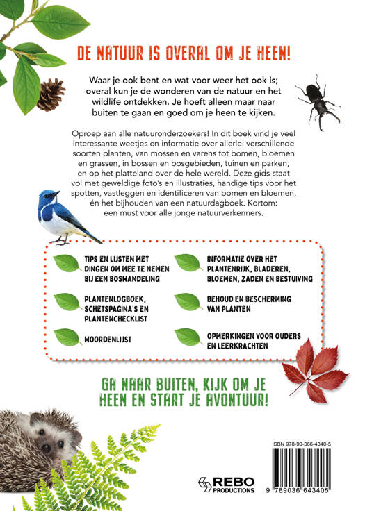Oproep aan alle natuuronderzoekers! In dit boek vind je veel interessante weetjes en informatie over allerlei verschillende soorten planten, van mossen en varens tot bomen, bloemen en grassen, in bossen en bosgebieden, tuinen en parken, en op het platteland over de hele wereld. Deze gids staat vol met geweldige foto's en illustraties, handige tips voor het spotten, vastleggen en identificeren van bomen en bloemen, én het bijhouden van een natuurdagboek. Kortom: een must voor alle jonge natuurverkenners.