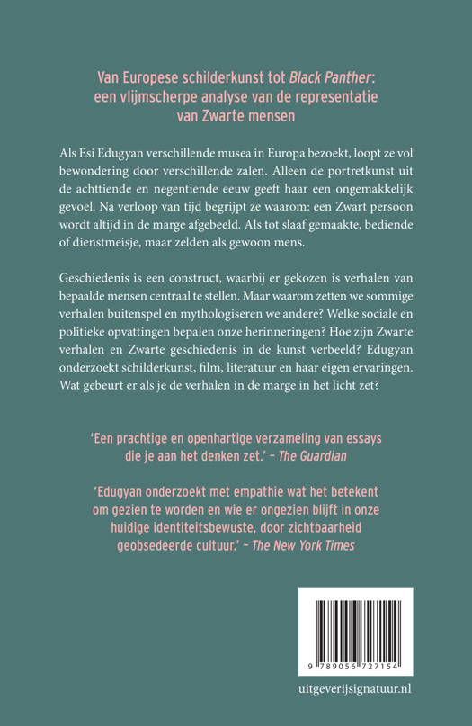 Als Esi Edugyan verschillende musea in Europa bezoekt, loopt ze vol bewondering door verschillende zalen. Alleen de portretkunst uit de achttiende en negentiende eeuw geeft haar een ongemakkelijk gevoel. Na verloop van tijd begrijpt ze waarom: een Zwart persoon wordt altijd in de marge afgebeeld. Als tot slaaf gemaakte, bediende of dienstmeisje, maar zelden als gewoon mens.