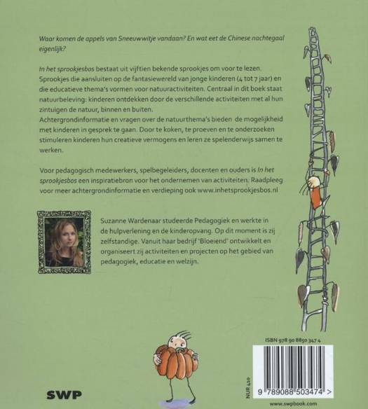 Suzanne Wardenaar verzamelde bekende sprookjes zoals Assepoester, Drie kleine biggetjes, Duimelijntje, Holle bolle Gijs en bedacht er natuuractiviteiten bij voor kinderen van 4 tot 7 jaar. De activiteiten zijn gericht op zintuiglijke beleving, het stimuleren van sociale vaardigheden en het ontwikkelen van creativiteit. Natuurbeleving en milieubewustzijn vormen de groene draden in het sprookjesbos. Ook in een stedelijke omgeving is het Sprookjesbos een middel om kinderen in contact te brengen met de natuur. Uit ieder sprookje is een natuurvoorwerp gekozen dat aanleiding geeft tot gesprekken. Bij Sneeuwwitje zijn dit bijvoorbeeld appels en bij Pinoccio is hout het natuurvoorwerp. De taalontwikkeling wordt niet alleen gestimuleerd door het voorlezen van de sprookjes maar ook door het aangaan van gesprekken met de kinderen. Om de gesprekken op gang te brengen zijn voorbeeldvragen opgenomen en achtergrond informatie over het betreffende natuurvoorwerp. De activiteiten zijn zowel binnen als buiten uit te voeren en zijn wisselend van lengte en van karakter. Er zijn knutselideeen, er wordt gekookt en geproefd, gespeeld, onderzocht en ontdekt. De meeste activiteiten kunnen met gratis, natuurlijk- of hergebruikt materiaal uitgevoerd worden. Ze zijn gericht op zintuigelijke beleving, het stimuleren van sociale vaardigheden en het ontwikkelen van creativiteit. Pedagogisch medewerkers, activiteiten- en spelbegeleiders en docenten kunnen de ideeën uit het boek gebruiken in de (buitenschoolse) opvang en op school. Voor ouders is het Sprookjesbos een inspiratiebron voor het ondernemen van activiteiten.
