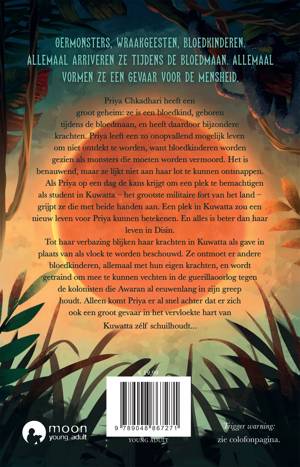 Priya Chkadhari heeft een groot geheim: ze is een bloedkind, geboren tijdens de bloedmaan, en heeft daardoor bijzondere krachten. Priya leeft een zo onopvallend mogelijk leven om niet ontdekt te worden, want bloedkinderen worden gezien als monsters die moeten worden vermoord. Het is benauwend, maar ze lijkt niet aan haar lot te kunnen ontsnappen.