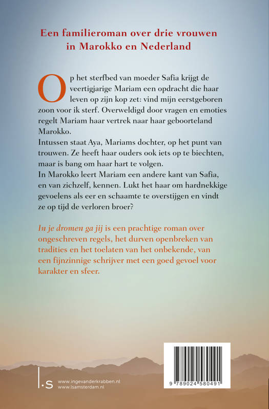 In je dromen ga jij van Inge van der Krabben is een indrukwekkende familieroman over drie generaties Marokkaanse vrouwen in Nederland en het familiegeheim dat hen verbindt.