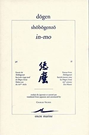 Le Shobogenzo, compose vers 1242 par le maitre zen Dogen Zenji, traite de la vision juste et de la voie de l'eveil. Ce texte s'appuie sur la pensee de Nagarjuna, fondateur de la tradition du bouddhisme Madhyamaka, et sur la patrologie chan de l'epoque Tang. In-mo designe la nature veritable des choses, l'ainsi. Le texte japonais est une reproduction de calligraphies datant de 1686.