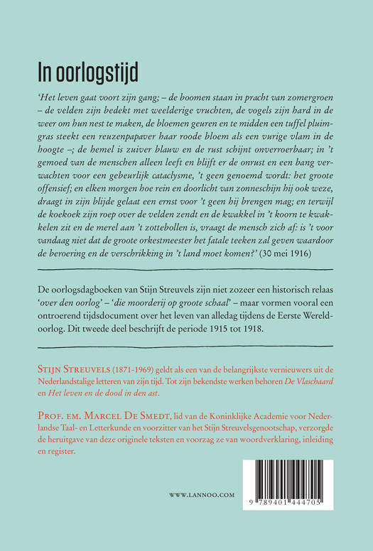In zijn oorlogsdagboek registreert Streuvels wat er zich in en rond het West-Vlaamse Ingooigem afspeelt en geeft commentaar doorspekt met filosofische beschouwingen. Anders dan voor het eerste deel (1914), dat gebaseerd is op de boekdeeltjes die in 1915-1916 door Streuvels zelf werden gepubliceerd, werd voor dit tweede deel (1915-1918) vertrokken van het originele manuscript, dat berust in het Letterenhuis in Antwerpen. Het bestaat uit getypte tekst en uit tekst geschreven op de keerzijde van allerlei kladblaadjes. Bovendien - en hierin ligt een belangrijk element van de meerwaarde van deze editie - kunnen we ook de tekst geven van het dagboekgedeelte van februari tot augustus 1915. Dat werd tot nog toe nooit gepubliceerd.