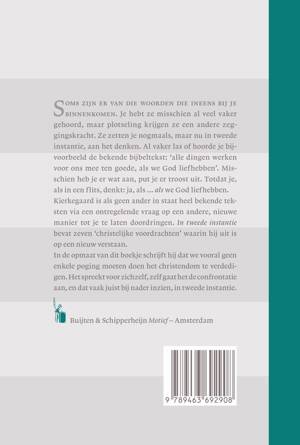Soms zijn er van die woorden die ineens bij je binnenkomen. Je hebt ze misschien al veel vaker gehoord, maar plotseling krijgen ze een andere zeggingskracht. Ze zetten je nogmaals, maar nu in tweede instantie, aan het denken. Al vaker las of hoorde je bijvoorbeeld de bekende bijbeltekst: ‘alle dingen werken voor ons mee ten goede, als we God liefhebben’. Misschien heb je er wat aan, put je er troost uit. Totdat je, als in een flits, denkt: ja, als ... als we God liefhebben. Kierkegaard is als geen ander in staat heel bekende teksten via een ontregelende vraag op een andere, nieuwe manier tot je te laten doordringen. In tweede instantie bevat zeven ‘christelijke voordrachten’ waarin hij uit is op een nieuw verstaan. In de opmaat van dit boekje schrijft hij dat we vooral geen enkele poging moeten doen het christendom te verdedigen. Het spreekt voor zichzelf, zelf gaat het de confrontatie aan, en dat vaak juist bij nader inzien, in tweede instantie.
