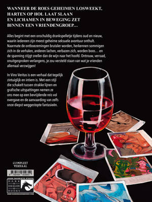In Vino Veritas is een verhaal dat tegelijk zintuiglijk en intiem is. Met een stijl die schakelt tussen strakke lijnen en grafische uitspattingen nemen ze ons mee op een bevrijdende reis vol overgave en de aanvaarding van zelfs onze diepst weggestopte fantasieën.
