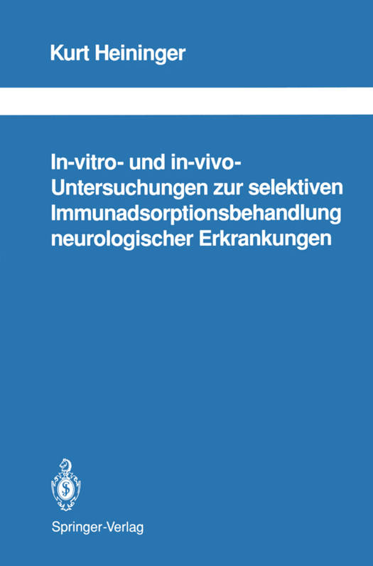 Plasmaaustauschverfahren gehören zum therapeutischen Instrumentarium schwerer Zustandsbilder neuroimmunologischer Erkrankungen wie z.B. Myasthenia gravis und chronische Polyneuritis. Nachteilig ist, daß dabei unselektiv sämtliche Plasmaproteine entfernt werden und durch Fremdprotein substituiert werden müssen. Ein neuentwickeltes Adsorptionsgel, bestehend aus gekörntem Polyvinylalkohol und kovalent gebundenem Tryptophan zeigte in vitro selektive Adsorptionseigenschaften für die bei der Myastenia gravis pathogenen Autoantikörper. Die Adsorption fand über hydrophobe Wechselwirkungen zwischen den Antikörpern und dem Gelmaterial statt. Fünfzehn Patienten mit schwerer Myasthenia gravis und drei Patienten mit chonischer Polyneuritis wurden in vivo mit dem Immunadsorptionsverfahren behandelt, wobei die Patienten ihr eigenes, an pathogenen Substanzen verarmtes Plasma zurückerhielten. Die klinischen Erfolge waren durchweg gut und erwiesen sich bei fünf cross-over Vergleichen als gleichwertig mit Plasmaaustauschbehandlungen. Das Immunadsorptionsverfahren war gut verträglich. Das Immunadsorptionsverfahren kann die therapeutischen Optionen bei neuroimmunologischen Erkrankungen erweitern und darüber hinaus weitere pathogenetischen Erkenntnisse liefern.
