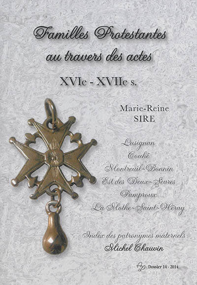 Index conçu pour repérer les patronymes recensés dans les quatre tomes et l'addenda de la recherche généalogique sur les familles huguenotes ayant vécu dans le Poitou aux XVIe et XVIIe siècles.