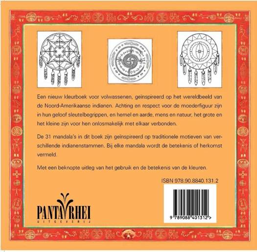 Een nieuw kleurboek voor volwassenen, geïnspireerd op het wereldbeeld van de Noord-Amerikaanse indianen. Achting en respect voor de moederfiguur zijn in hun geloof sleutelbegrippen, en hemel en aarde, mens en natuur, het grote en het kleine zijn voor hen onlosmakelijk met elkaar verbonden. De 31 mandala's in dit boek zijn geïnspireerd op traditionele motieven van verschillende indianenstammen. Bij elke mandala wordt de betekenis of herkomst vermeld. Met een beknopte uitleg van het gebruik en de betekenis van de kleuren.