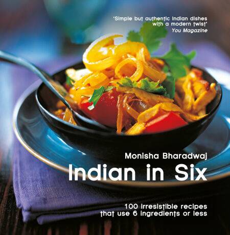 How often do you read recipe books and become disheartened by a never-ending list of ingredients? This is often especially true of Indian cookbooks, and is enough to prompt anyone to reach for the takeaway menu - but don't dial! Award-winning author Monisha Bharadwaj has come to the rescue with her stunning new recipe book, Indian in 6. Indian food is one of the best-loved cuisines in the world. It is also extremely versatile - whether you want to cook a quick weeknight meal or a banquet for your friends ? there is a multitude of regional recipes, fresh ingredients and aromatic herb and spice combinations to choose from. Each of Monisha's exciting, authentic and elegant Indian dishes uses just 6 ingredients or less, with the only store cupboard ingredients required being vegetable oil, salt and ginger-garlic paste. She uses simple and healthy cooking methods to bring the rich flavours of the sub-continent to your table, in a matter of minutes, and Gus Filgate's sumptuous photographs bring the dishes to vibrant life. The delicious recipes include: Spinach and Coconut Soup; Roasted Aubergine in Yoghurt; Creamy Silver Lamb Curry; Chicken and Coconut Stir-fry; Wild Mango and Mustard Salad; South Indian Crab; Goan Pork Salad ; Garlicky Chicken with Mango Butter; Banana Leaf Squid; Prawns with Lime and many more that you won't find at your local takeaway!