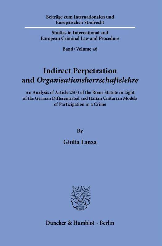 The book analyses indirect perpetration within the meaning and interpretation of article 25(3)(a), third alternative, of the Rome Statute from a comparative perspective. Through a critical analysis, Giulia Lanza examines the control over the organization theory, adopted by the majority to interpret the provision. The objective of the author is to verify whether the dominant approach - resulting from the transposition of Roxin's Organisationsherrschaftslehre at the ICC - constitutes a feasible solution in the interpretation and application of article 25 (3)(a), third alternative, of the Rome Statute, or whether it is preferable to rely on different approaches inspired by other legal systems, such as the Italian system. The author concludes that the reliance on the Organisationsherrschaftslehre constitutes an important step in the path towards the development of autonomous ICL doctrine regarding indirect perpetration.