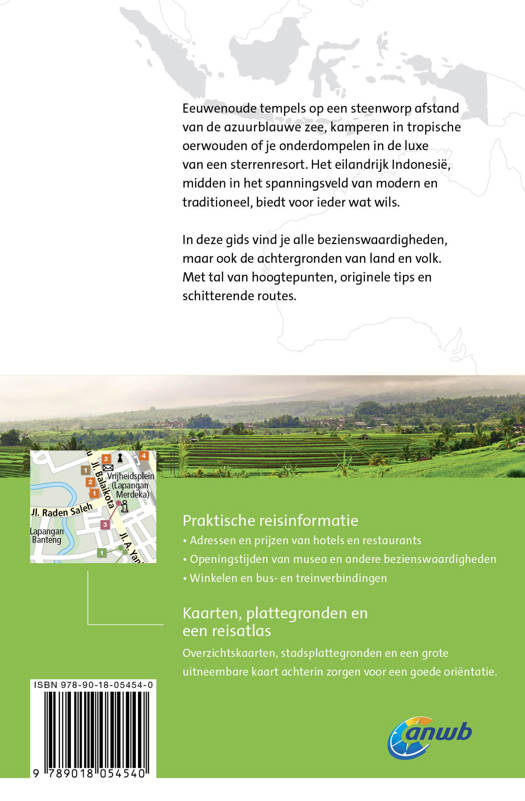 De ANWB Wereldreisgids Indonesië is een complete en praktische reisgids voor jouw droomvakantie door Indonesië. Het land van oude tempels op steenworp afstand van een azuurblauwe zee en het Nationaal Park Bali Barat. Maar ook van grote steden vol bezienswaardigheden zoals het stadhuis van Jakarta en het Geologisch Museum in Bandung.