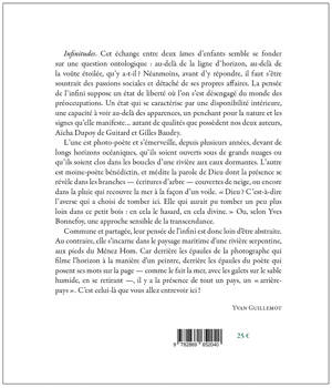 « Infinitudes » est un échange poétique entre la photographe Aïcha Dupoy de Guitard et le poète Gilles Baudry. Après un premier beau-livre, « Matin des arbres », né de leur collaboration en 2017, puis un deuxième, « Eaux intérieures » publié deux années plus tard, nos auteurs poursuivent leur exploration d’un pays qui s’étend de la pointe de Crozon aux confins du parc régional d’Armorique. Leur dialogue se fonde ici sur une question ontologique : au-delà de la ligne d’horizon, dans l'espace infini qu'offre la mer, qu’y a-t-il ? Nul régionalisme, cependant, dans leur approche géographique des lieux. Au contraire : entre onirisme et réalité (dans la forêt de Landévennec), entre mystères des eaux courantes et impermanence de la condition humaine (au cœur des monts d’Arrée), entre rêverie devant l’horizon et pensée de l’infini (de la rade de Brest aux pieds du Ménez Hom), les thématiques choisies sont les différentes facettes d’un même creuset où se déploient les mots de passe et les images de leur sensibilité armoricaine. Pour étayer l’ouvrage, Emmanuelle Périé-Bardout apporte, dans la préface, son témoignage d’exploratrice scientifique dans les pôles. Pour contextualiser le parcours de nos deux auteurs, Alain-Gabriel Monot livre, dans la postface, un commentaire biographique et réflexif. Ces deux contributions éclairent, avec expertise et justesse, le dialogue poétique qui se joue dans « Infinitudes ».