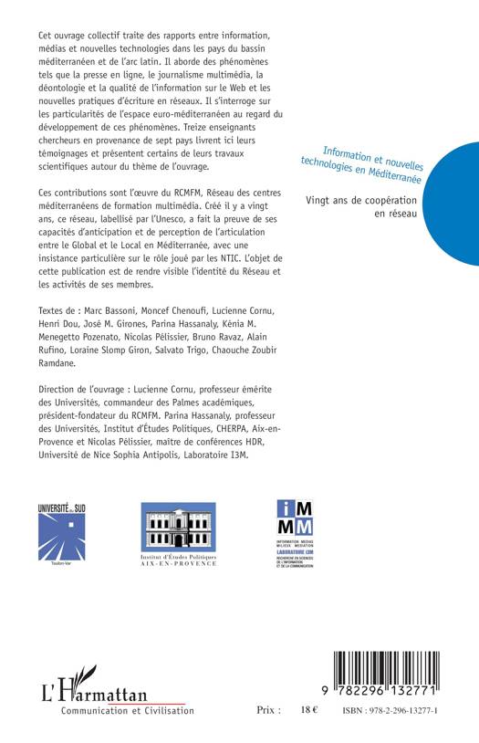 Cet ouvrage traite des rapports entre information, médias et nouvelles technologies dans les pays du bassin méditerranéen et de l'arc latin. Il aborde des phénomènes tels que la presse en ligne, le journalisme multimédia, la déontologie et la qualité de l'information sur le Web et les nouvelles pratiques d'écriture en réseaux. Il s'interroge sur les particularités de l'espace euro-méditerranéen au regard du développement de ces phénomènes.