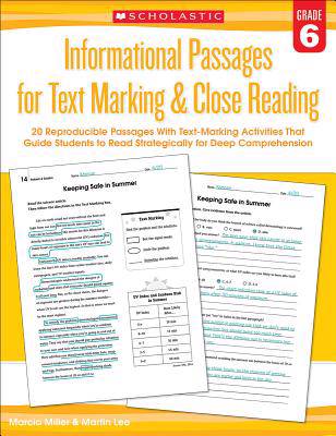 The higher standards students today are expected to meet call for literacy instruction that focuses on the close reading of complex texts. These informational text passages are organized around high-interest topics connected to the curriculum and to key comprehension skills. The readings are specially formatted to provide practice with text marking, a proven, powerful tool for building comprehension skills, such as finding main idea and details, identifying cause and effect, and sequencing events. For use with Grade 6.