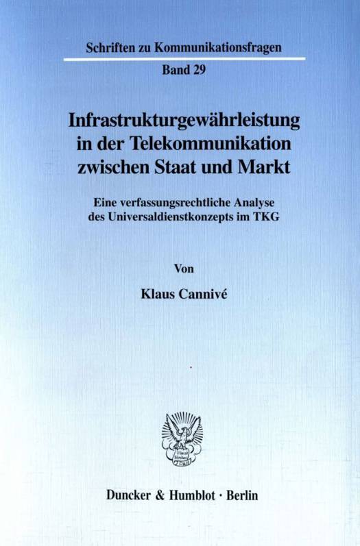 Der Autor beschäftigt sich mit der Frage, wie in den privatisierten und liberalisierten Telekommunikationsmärkten eine flächendeckende Grundversorgung sichergestellt werden kann. In diesem Zusammenhang wird das im Telekommunikationsgesetz zu diesem Zwecke vorgesehene Universaldienstsystem aus verfassungsrechtlicher Perspektive beleuchtet. Einen Schwerpunkt der Erörterungen bildet die Analyse des Infrastrukturgewährleistungsauftrages (Art. 87 f Abs. 1 GG), der im Rahmen der Postreform II Eingang in das Grundgesetz gefunden hat. Daneben setzt sich der Verfasser eingehend mit den Grundrechten der Telekommunikationsunternehmen und der Finanzverfassung des Grundgesetzes als Prüfungsmaßstäbe für infrastruktursichernde regulatorische Maßnahmen auseinander.