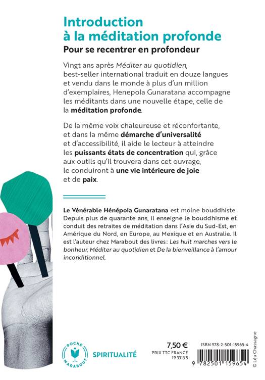 Vingt ans après Méditer au quotidien, best-seller international traduit en douze langues et vendu dans le monde à plus d’un million d’exemplaires, Henepola Gunaratana accompagne les méditants dans une nouvelle étape, celle de la méditation profonde. De la même voix chaleureuse et réconfortante, et dans la même démarche d’universalité et d’accessibilité, il aide le lecteur à atteindre les puissants états de concentration qui, grâce aux outils qu’il trouvera dans cet ouvrage, le conduiront à une vie intérieure de joie et de paix.