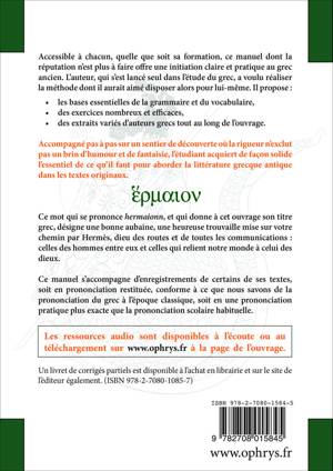 Accessible à chacun, quelle que soit sa formation, ce manuel dont la réputation n'est plus à faire offre une initiation claire et pratique au grec ancien. L'auteur, qui s'est lancé seul dans l'étude du grec, a voulu réaliser la méthode dont il aurait aimé disposer alors pour lui-même. Il propose :