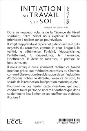Dans ce nouveau volume de la "Science de l’éveil spirituel", Selim Aïssel nous explique le travail prioritaire à réaliser sur soi pour évoluer. Il s’agit d’apprendre à repérer et à dépasser ses traits négatifs du caractère, comme la peur, l’orgueil, la vanité, la véhémence, l’avidité, l’égocentrisme, l’entêtement, la dépendance, le mensonge, l’inefficience, le désir de maîtriser, la paresse, le lunatisme, etc. Il nous explique aussi comment réaliser ce travail intérieur grâce aux méthodes expresses du Chemin, comme l’observation de soi, le rappel de soi, l’adoption d’attitudes nobles, la détente, l’exercice du stop, la spirale de la réalisation, la répétition mantrique, etc. Pourquoi ne pas tenter cette aventure, qui peut conduire toute personne sincère et authentique dans sa démarche à se libérer de ses souffrances et de ses illusions ?