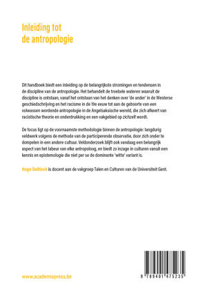 Dit handboek biedt een inleiding op de belangrijkste stromingen en tendensen in de discipline van de antropologie. Het behandelt de troebele wateren waaruit de discipline is ontstaan, vanaf het ontstaan van het denken over 'de ander' in de Westerse geschiedschrijving en het racisme in de 19e eeuw tot aan de geboorte van een volwassen wordende antropologie in de Angelsaksische wereld, die zich afkeert van racistische theorie en onderdrukking en een vakgebied op zichzelf wordt.