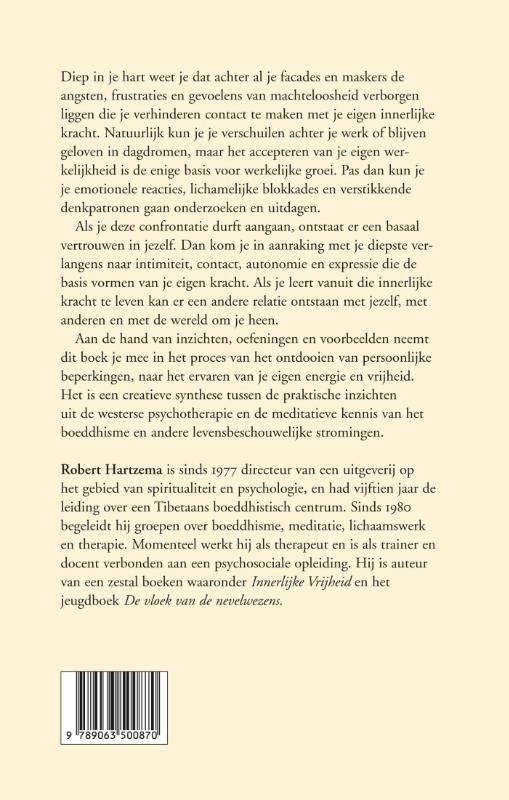 Diep in je hart weet je dat achter al je facades en maskers deangsten, frustraties en gevoelens van machteloosheid verborgen liggen die je verhinderen contact te maken met je eigen innerlijke kracht. Natuurlijk kun je je verschuilen achter je werk of blijven geloven in dagdromen, maar het accepteren van je eigen werkelijkheid is de enige basis voor werkelijke groei. Pas dan kun jeje emotionele reacties, lichamelijke blokkades en verstikkende denkpatronen gaan onderzoeken en uitdagen.