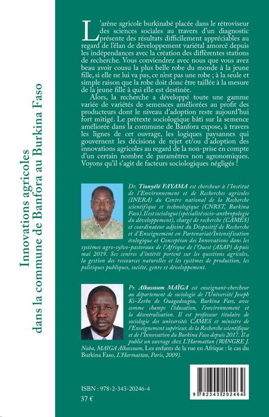 Le prétexte sociologique bâti sur la semence améliorée dans la commune de Banfora expose, à travers les lignes de cet ouvrage, les logiques paysannes qui gouvernent les décisions de rejet et/ou d'adoption des innovations agricoles au regard de la non-prise en compte d'un certain nombre de paramètres non agronomiques.