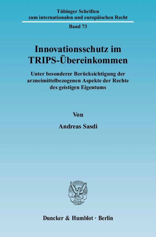 Ziel der vorliegenden Arbeit ist es, den im TRIPS-Übereinkommen angelegten Innovationsschutz herauszuarbeiten, der insbesondere für die Pharma- und Biotechnologieindustrie ein wichtiges Investitionskriterium darstellt. Hierunter fallen nicht nur Patentrechte, sondern auch der wettbewerbsrechtliche Schutz von Zulassungsdaten, mit dem ebenfalls eine Schutzbarriere gegen die Herstellung billigerer Imitationspräparate aufgebaut werden kann. Die Mitgliedstaaten erhalten durch die patentrechtlichen Ausnahmebestimmungen die Möglichkeit, den Innovationsschutz zugunsten gesundheitspolitischer Schutzinteressen einzuschränken. Die Zulässigkeit und Grenzen solcher "gesundheitspolitischen" Einbruchstellen waren Streitgegenstand des Panelverfahrens "Kanada - Patentschutz", dessen Verlauf umfassend kommentiert und anschließend einer rechtlichen Bewertung unterzogen wird. Zu den Ausnahmeregelungen gehören auch die Zwangslizenzbestimmungen, deren Auslegung umstritten und seit der Doha-Erklärung zum TRIPS und öffentlichen Gesundheitswesen einer laufenden Diskussion unterworfen sind.